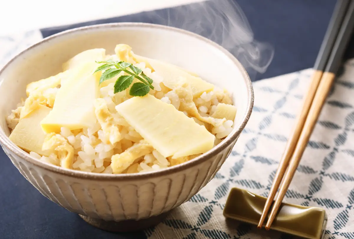 • Takenoko (bambuskott) dyker upp mellan mars och maj, ofta serverade i takenoko gohan (ris med bambuskott) eller som tempura.